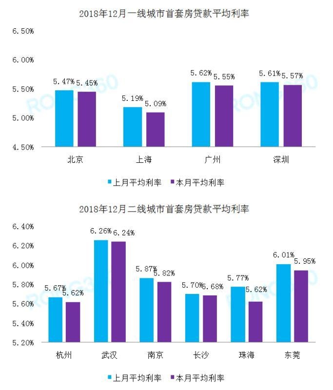 2018年12月一线、二线城市首套房贷款平均利率 数据来源:融360大数据研究院